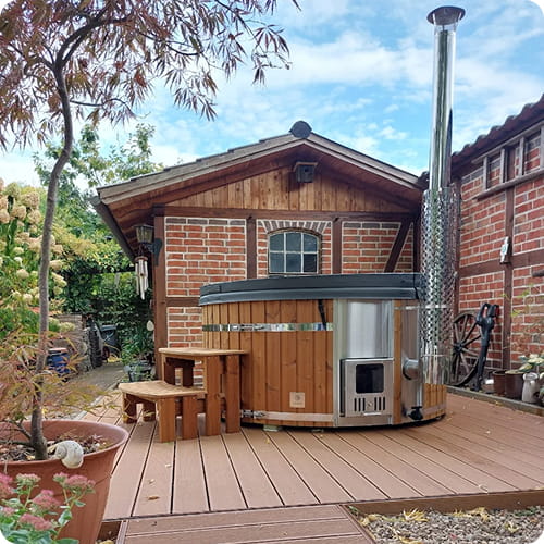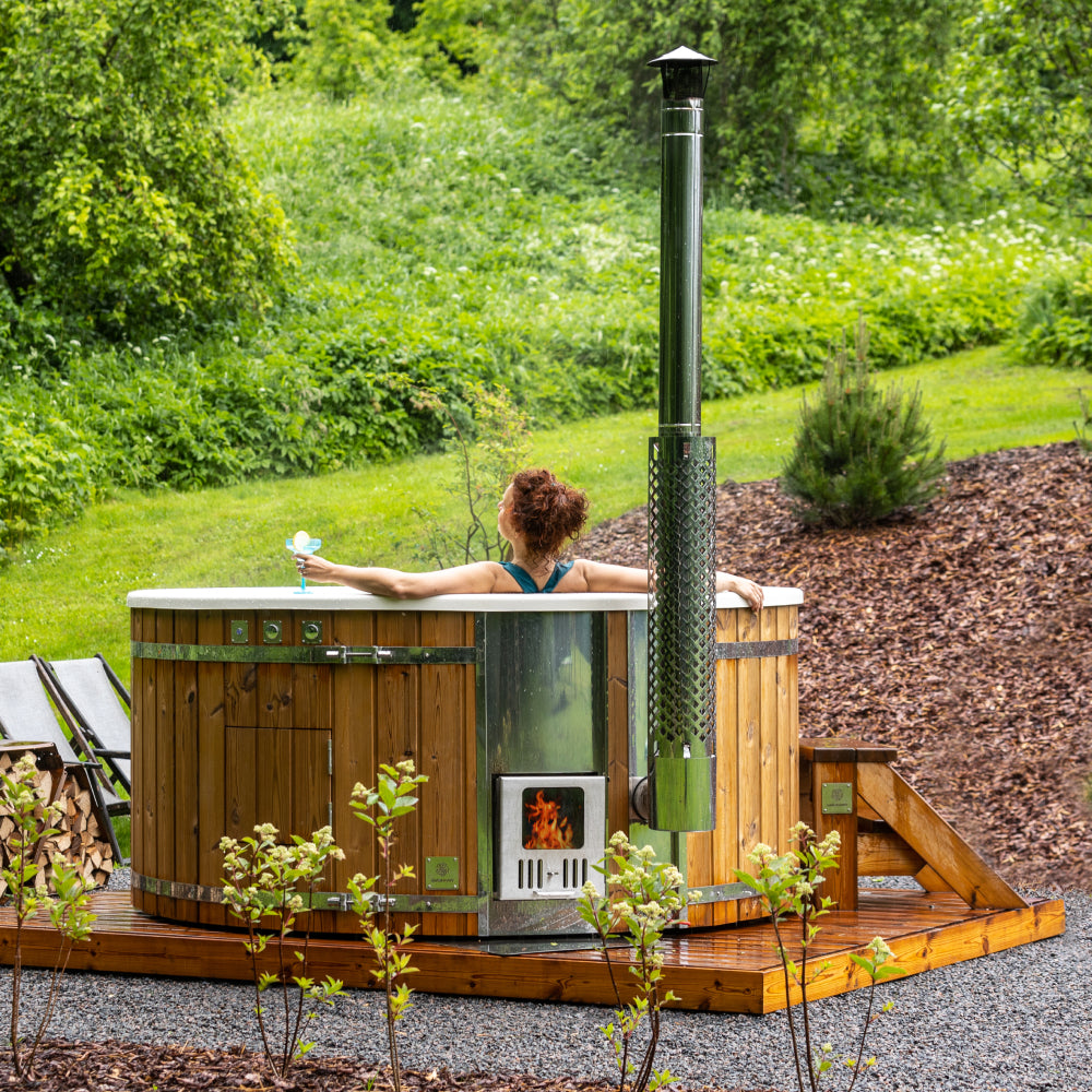 Unsere modernen holzbefeuerten Hot Tubs erhitzen das Wasser schnell und halten es länger warm – jederzeit einsatzbereit.