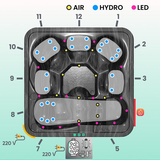 Premium Lounge Hot Tub mit Premium Filter | Beste Konfiguration | Marmor schwarz 6 | AISI 316