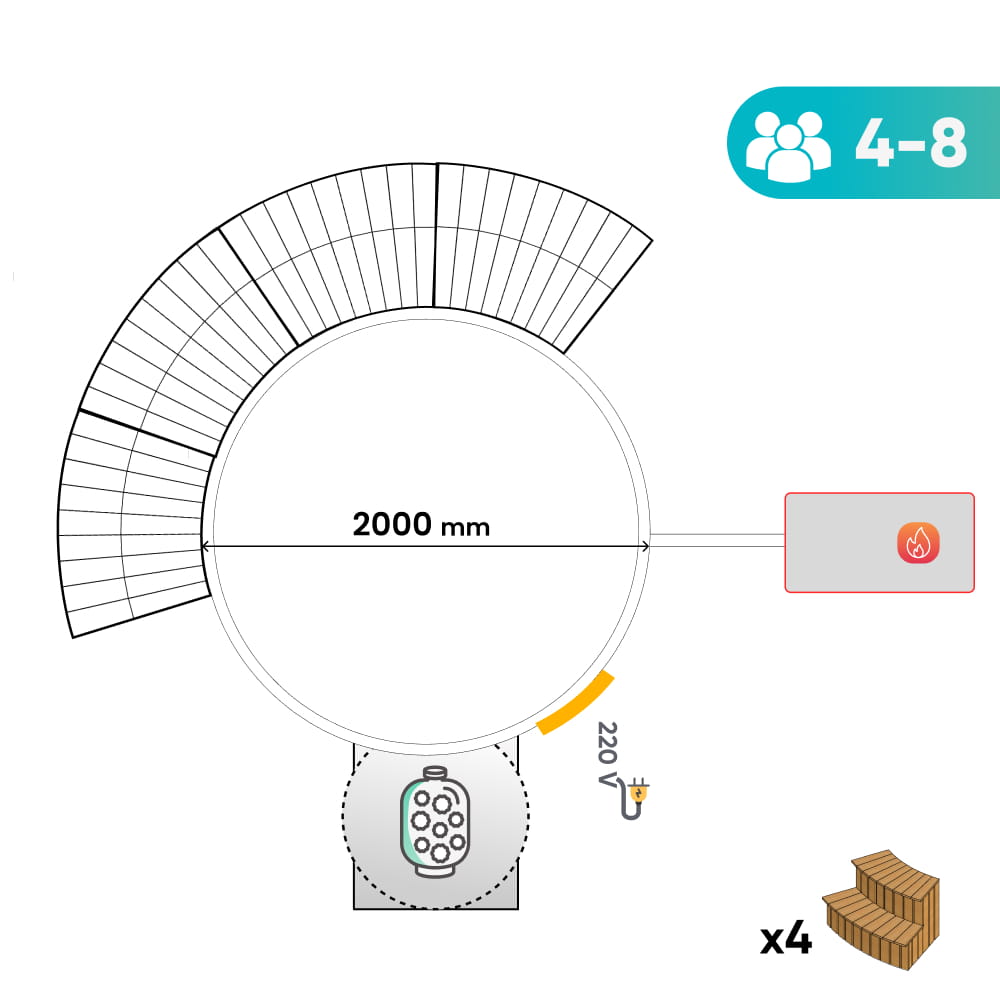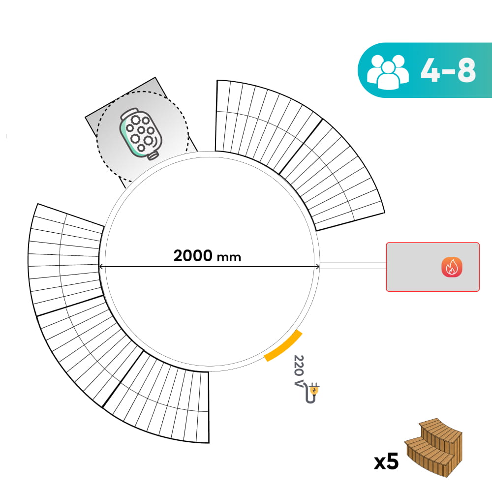 Fully Cladded Step Modules — Layout Around the Hot Tub & Dimensions