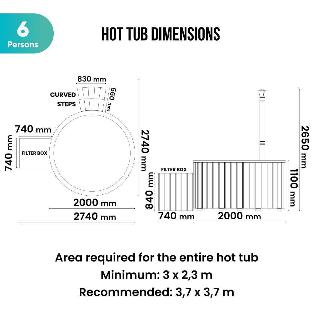 Configure Square Wood Fired Hot Tub for 6-8 Persons | External Heater