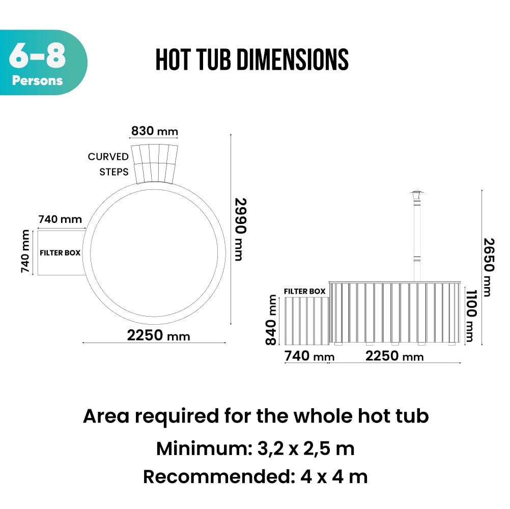 Configure Square Wood Fired Hot Tub for 6-8 Persons | External Heater