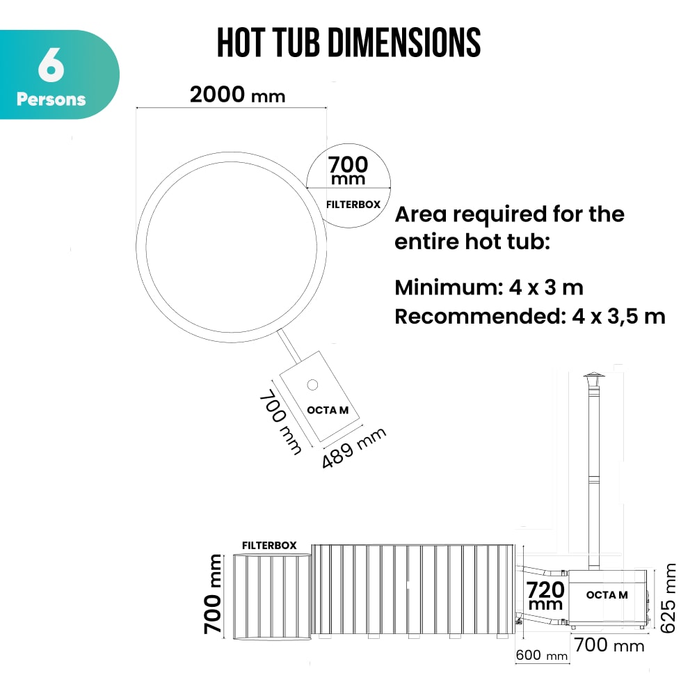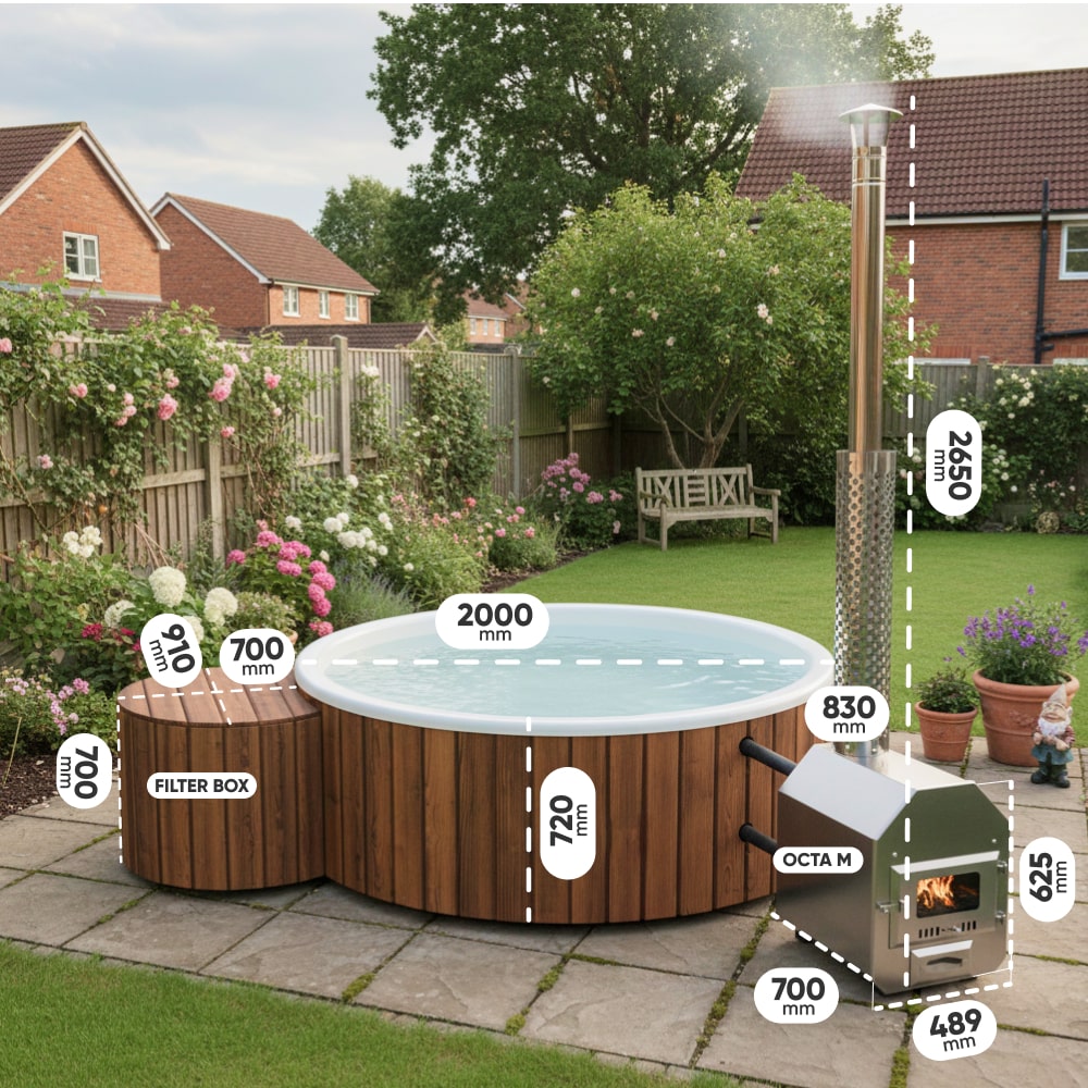 Configure Square Wood Fired Hot Tub for 6-8 Persons | External Heater
