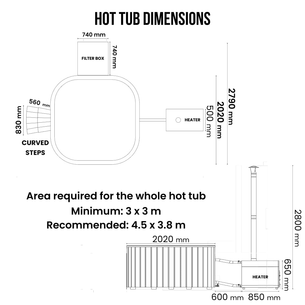 Configure Square Wood Fired Hot Tub for 6-8 Persons | External Heater