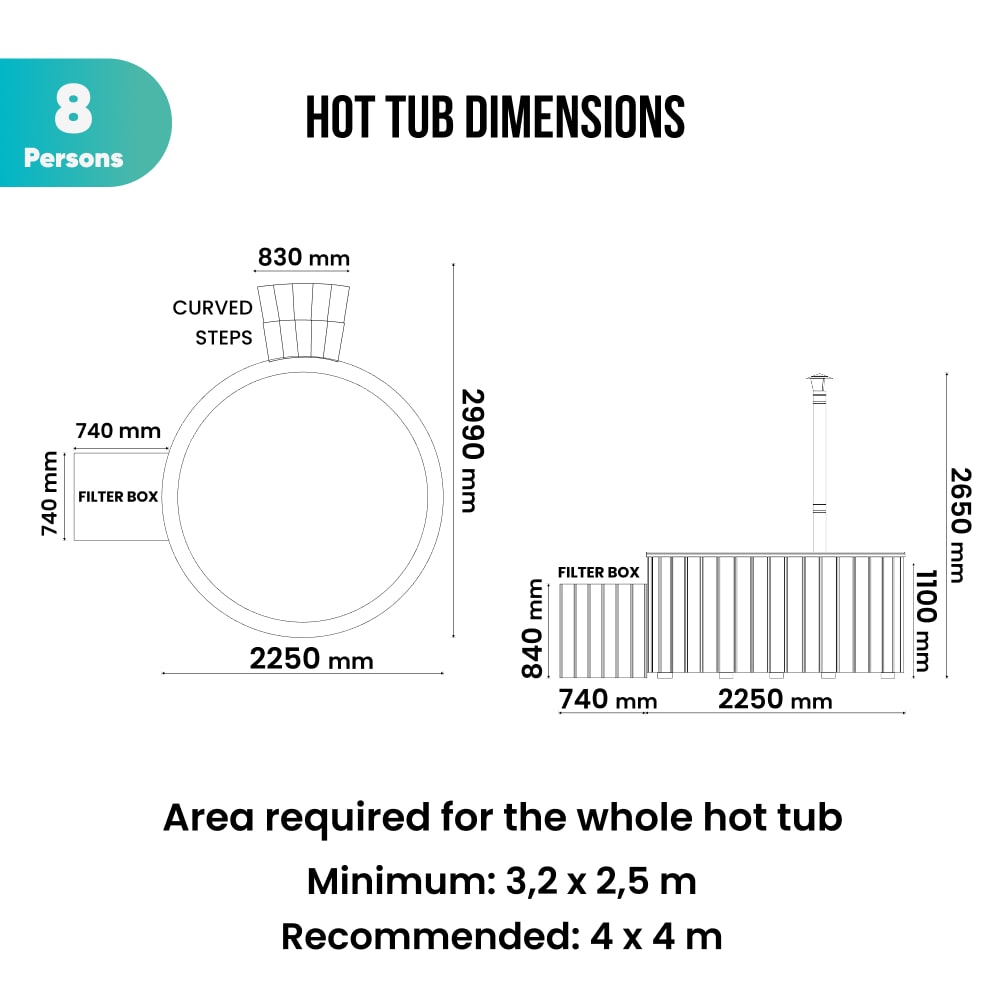 Configure Square Wood Fired Hot Tub for 6-8 Persons | External Heater