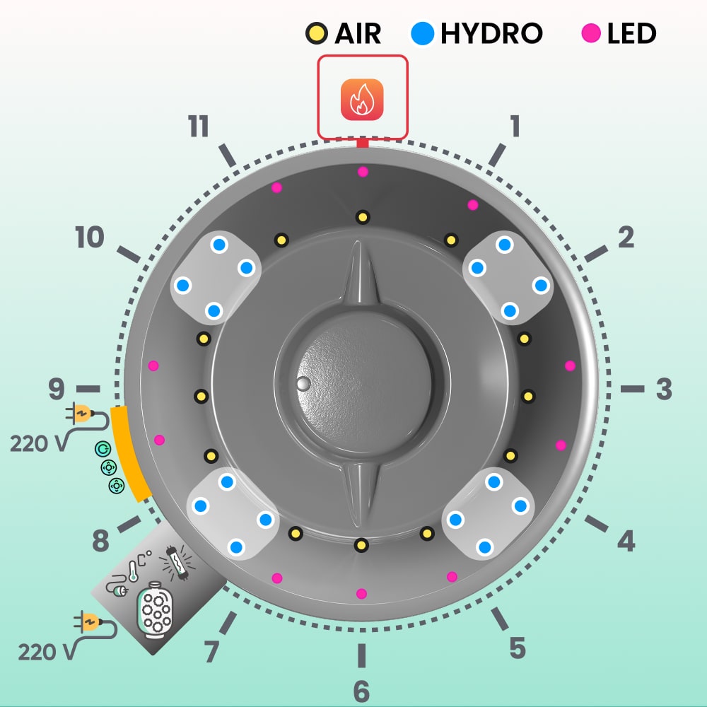 - Air jet massage system, 12 jets, 0.7 kW (£ 550)