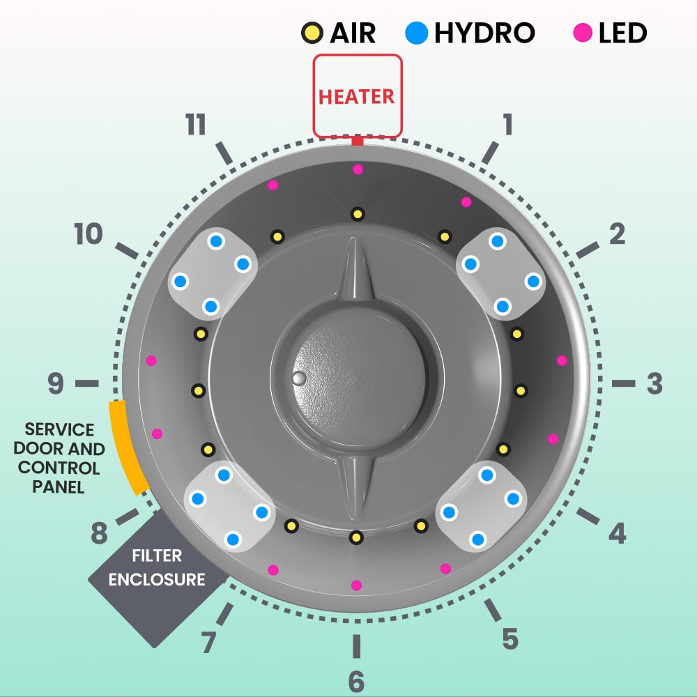All-inclusive hot tub with a grey acrylic insert and Premium filtration. This configuration includes: