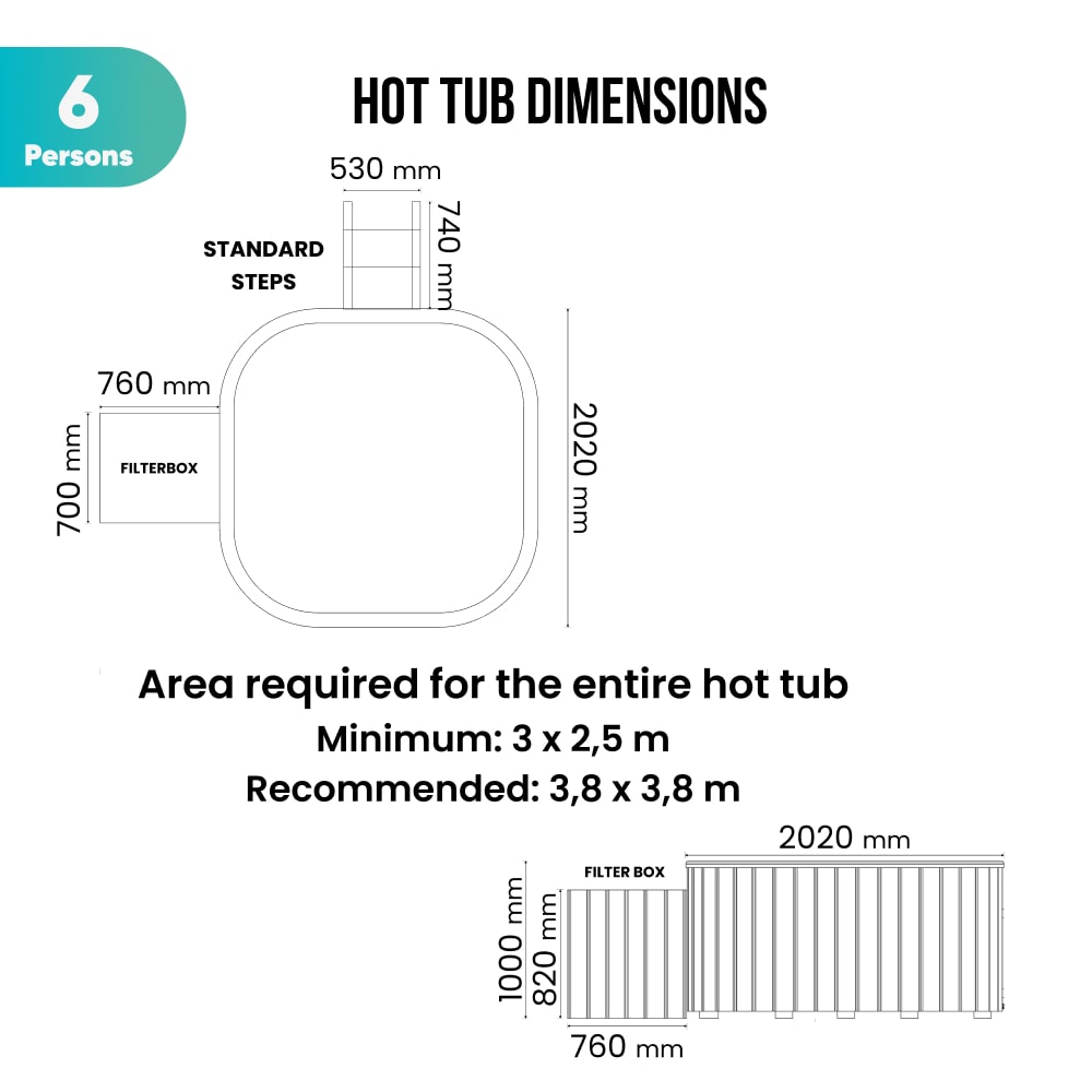 Configure Square Wood Fired Hot Tub for 6-8 Persons | External Heater
