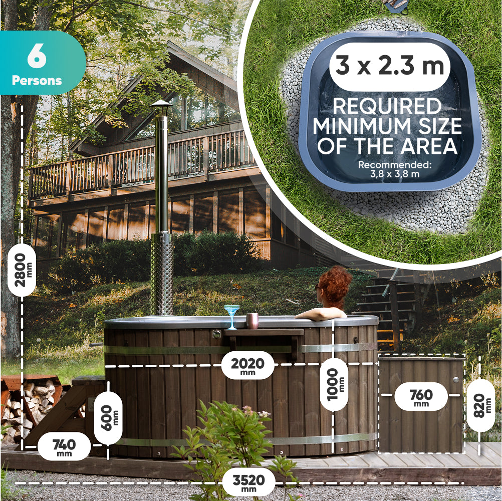 Configure Square Wood Fired Hot Tub for 4-6 Persons | Integrated Heater