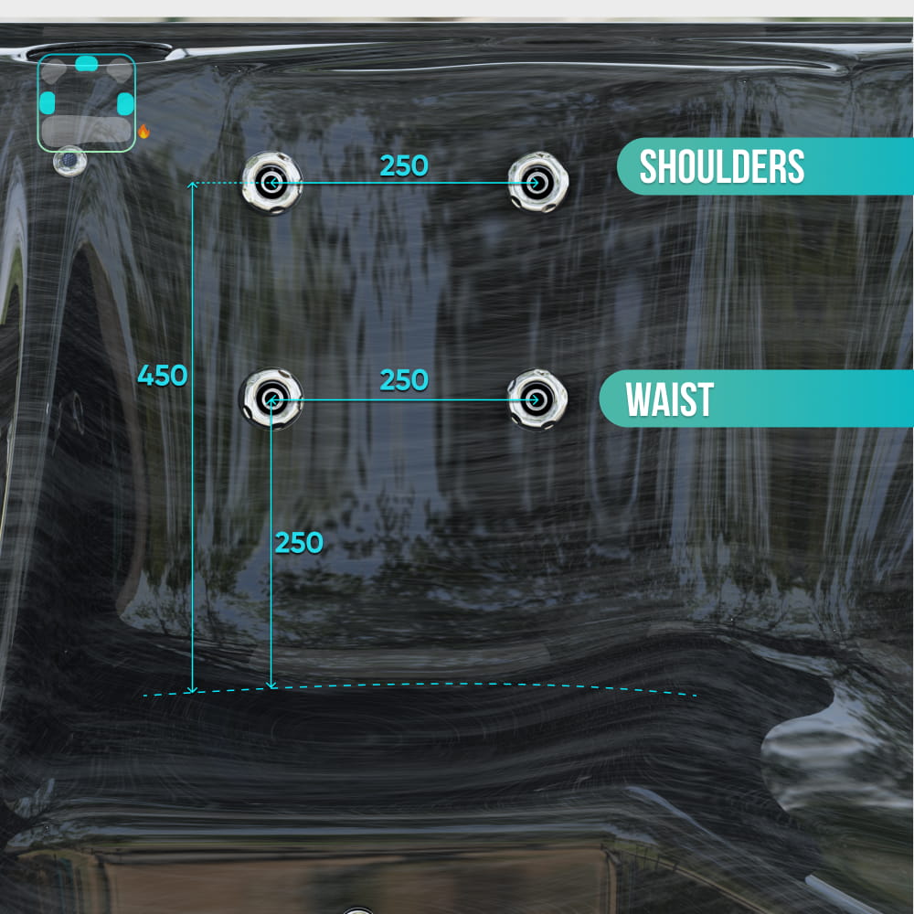 External dimensions of hot tub (L, W, H): 2200 x 2200 x 1050 mm