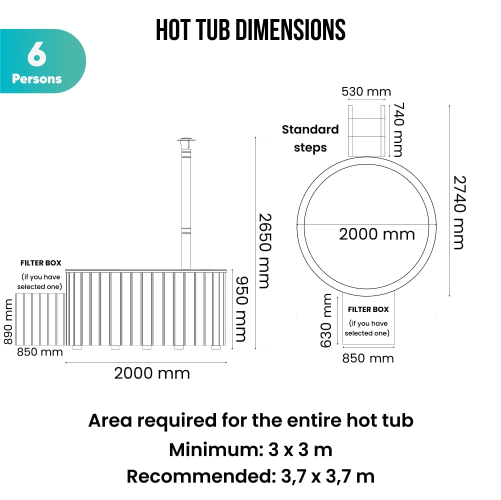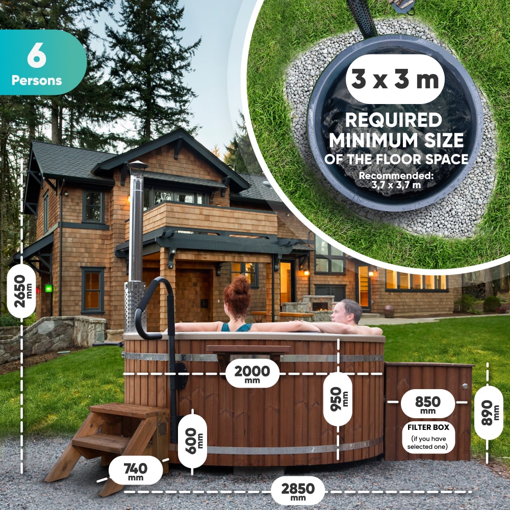 Configure Square Wood Fired Hot Tub for 6-8 Persons | External Heater
