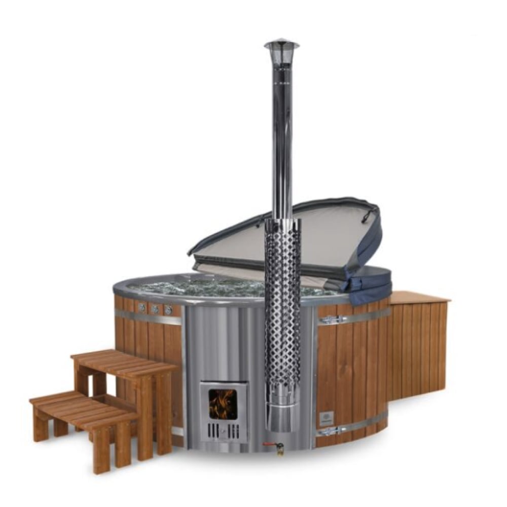 Kombinieren Sie ein Massagesystem mit einem Ofen für den ultimativen und luxuriösen Hot Tub—eine Verbindung von beruhigenden Düsen mit dem gemütlichen Holzkamin-Charme eines traditionellen Ofens. Perfekt für Entspannung im Freien das ganze Jahr über.