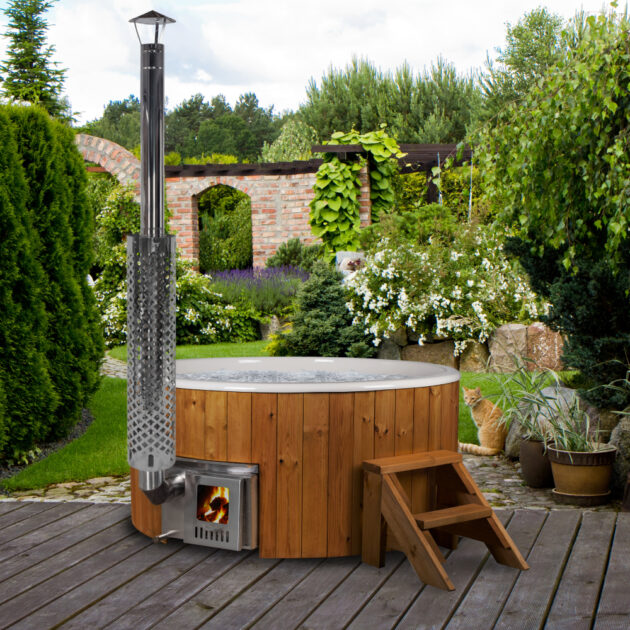 • Viele Menschen finden das Design eines Hot Tubs mit eingebautem Heizofen ästhetisch ansprechender