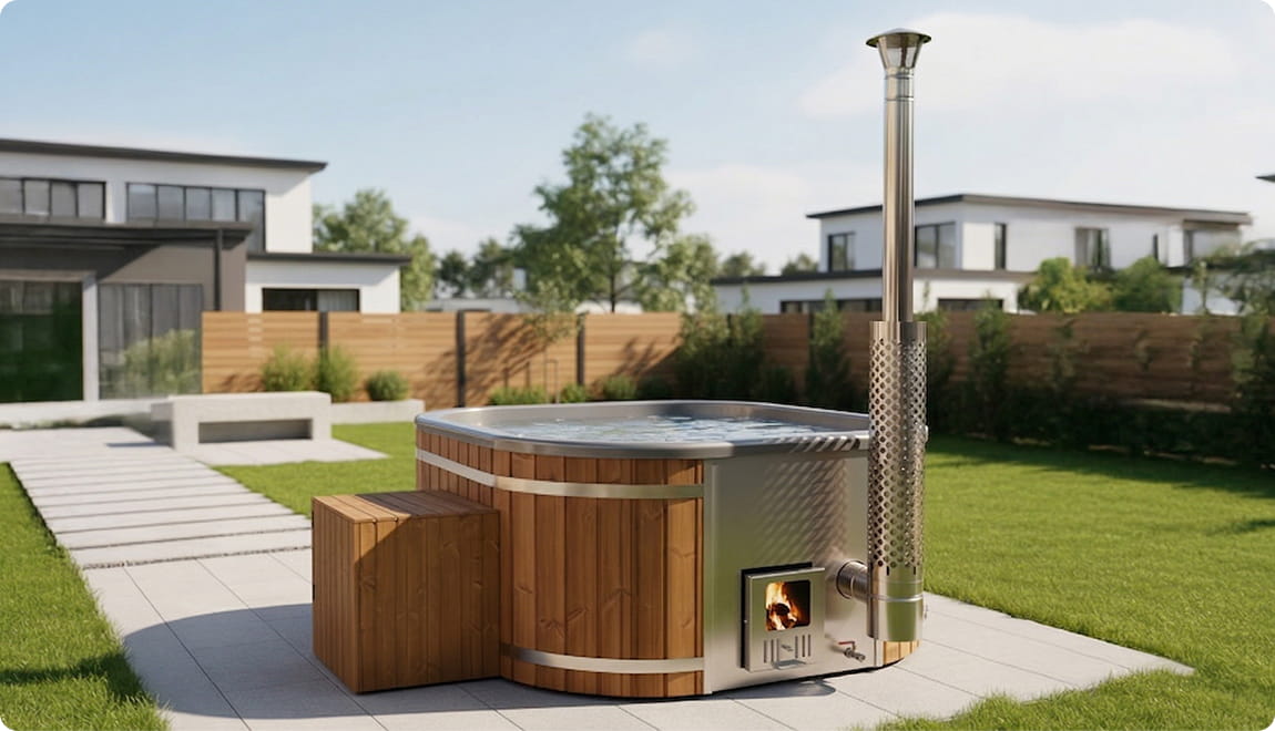 Genießen Sie das Beste aus beiden Welten – Jacuzzi-Komfort und das authentische Erlebnis eines holzbefeuerten Hot Tubs.