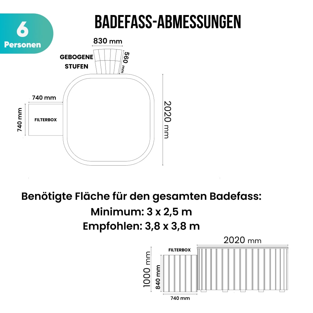• 4-6 Personen Hot Tub Badefass Einsatz aus Acryl (2585€)