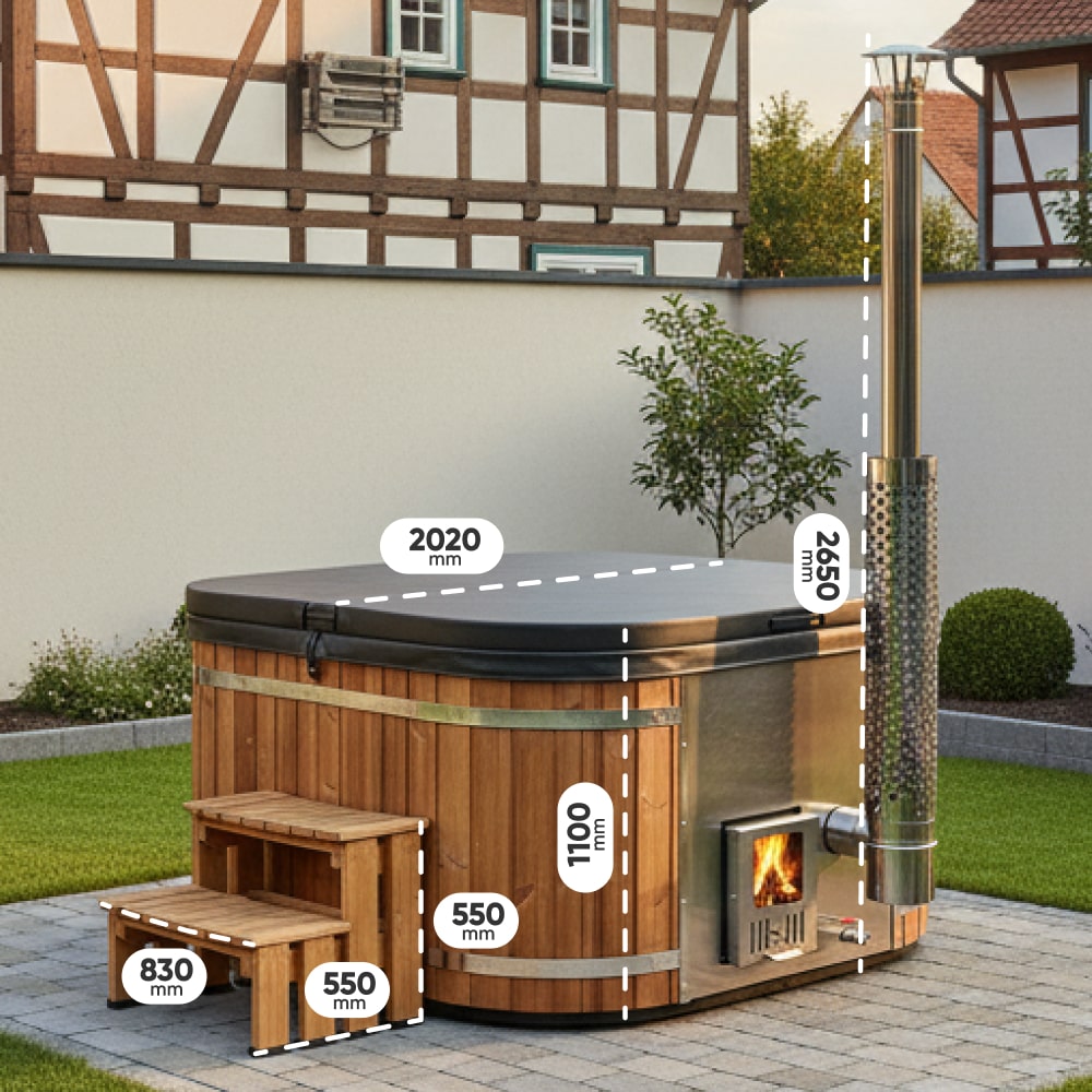 Die beste Konfiguration Premium Hot Tub | 4-6 Personen | Integrierter Holzofen AISI 316