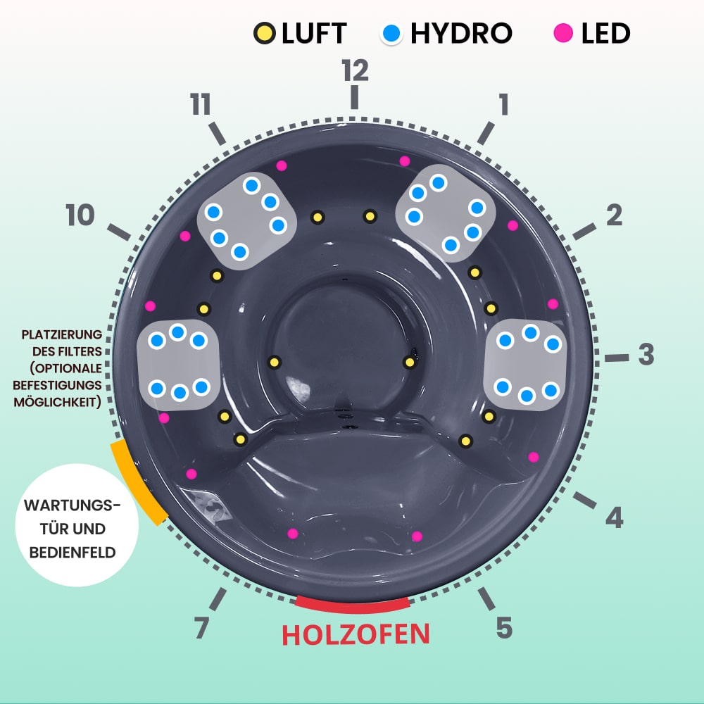Hot Tub GFK | Beste Konfiguration | 24 Hydro- und 12 Luftdüsen
