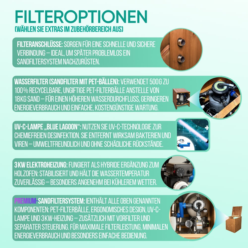 Konfigurierbar Whirpool mit Holzofen Eckig für 6-8 Personen | Externe Ofen