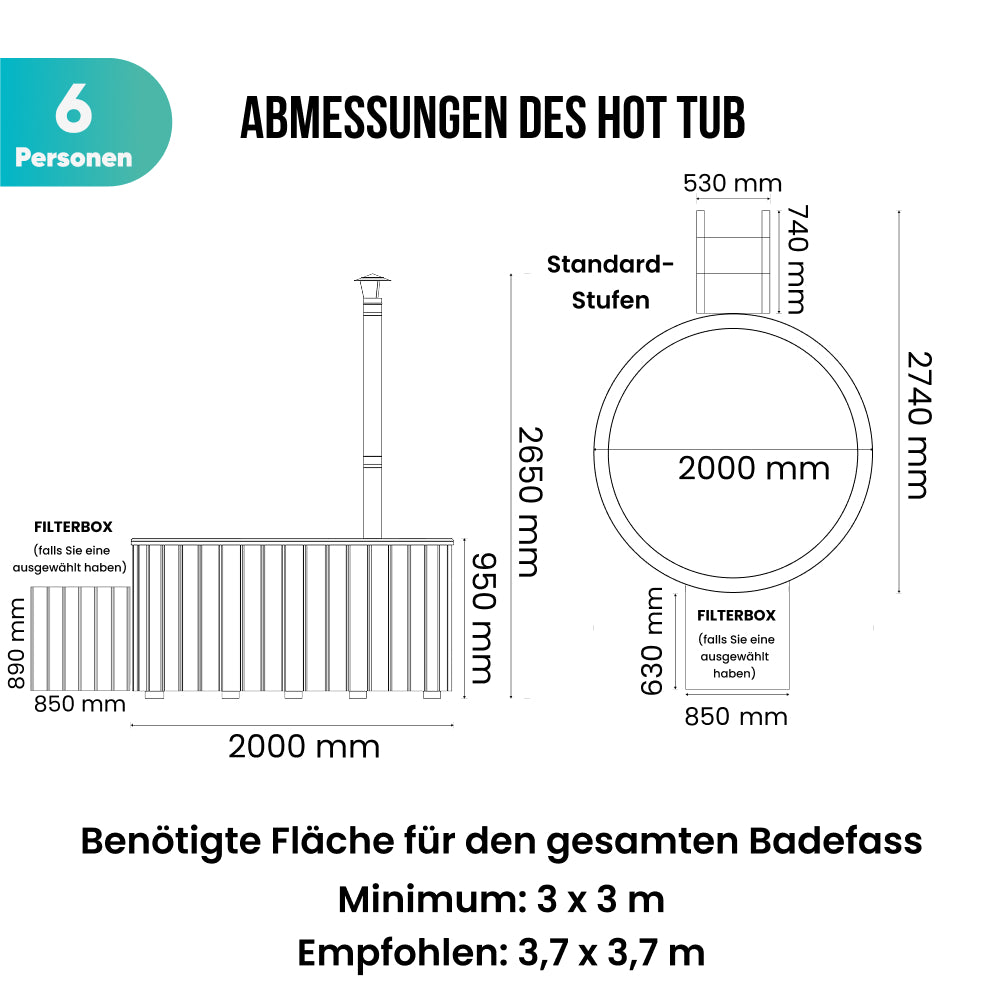 - 4-6-Sitzer Hot Tub mit Einsatz aus GFK (2040€)