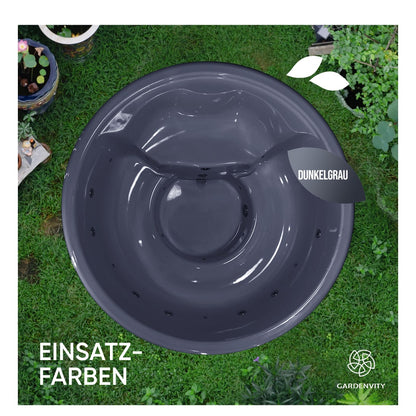 Ein Hot Tub mit einem grauen Glasfasereinsatz. Diese Konfiguration umfasst: