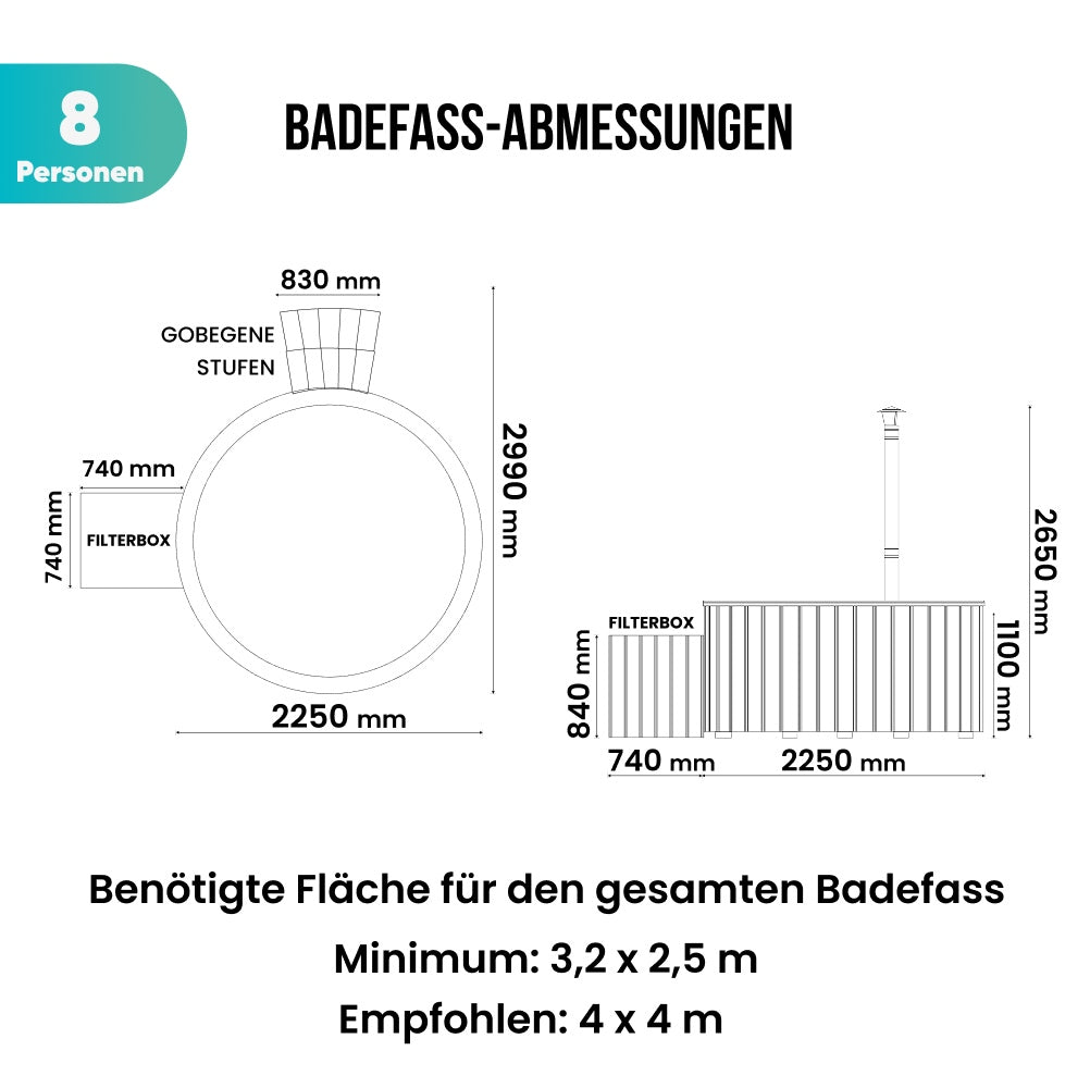 - 6-8 Personen Hot Tub Badefass Einsatz aus Acryl (2390€)