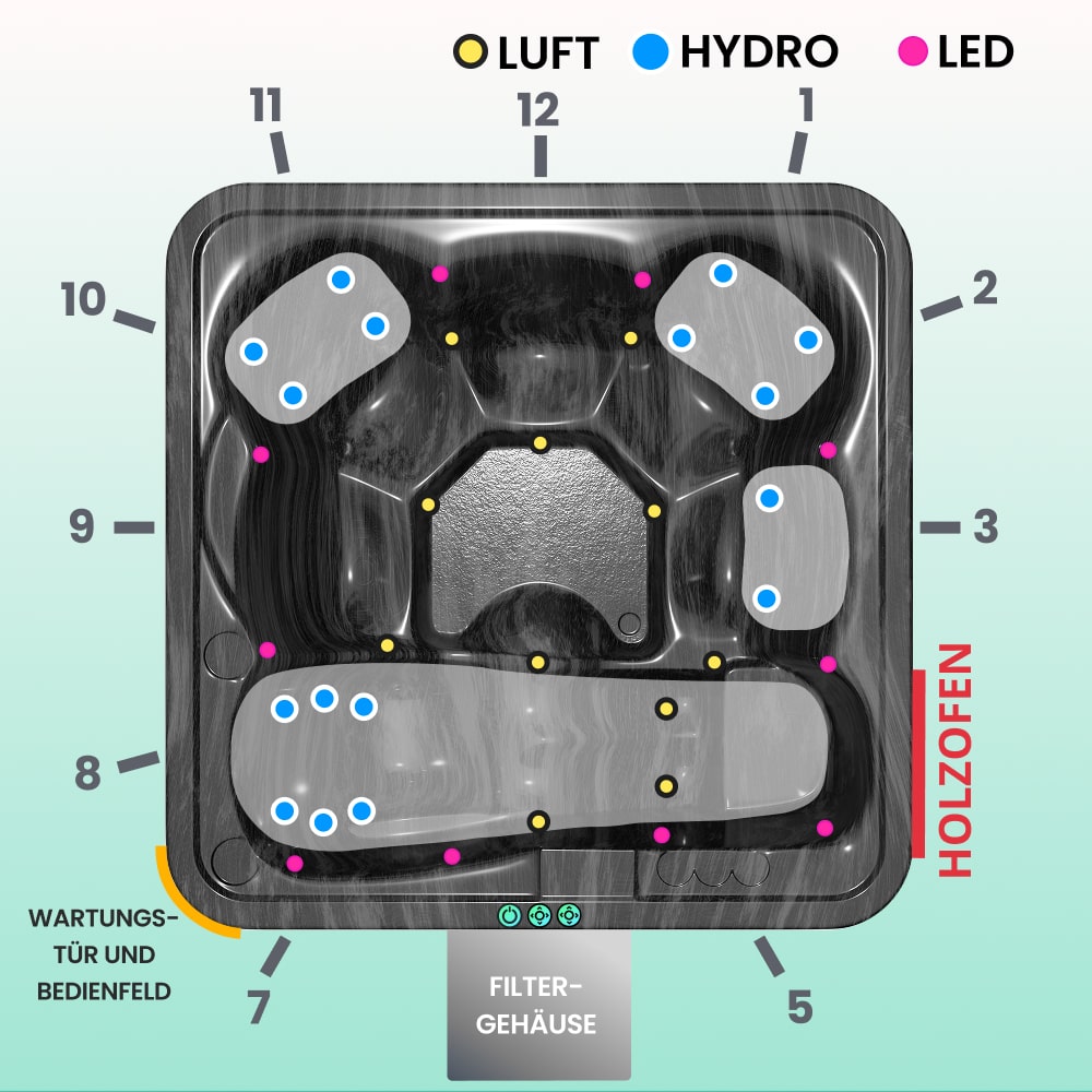 Premium Lounge Hot Tub mit Premium Filter | Marmor schwarz 6 | Integriert AISI 316