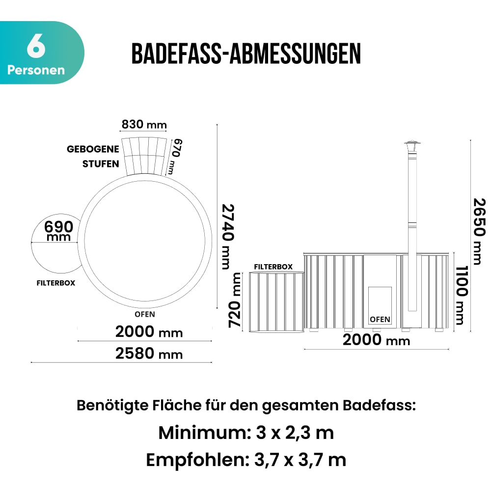 Empfohlene Größe der Grundfläche: 3700 x 3700 mm