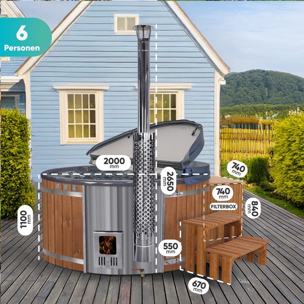 - Integrierter Holzofen aus Edelstahl AISI 316, mit Schornstein 2 Meter (700€)