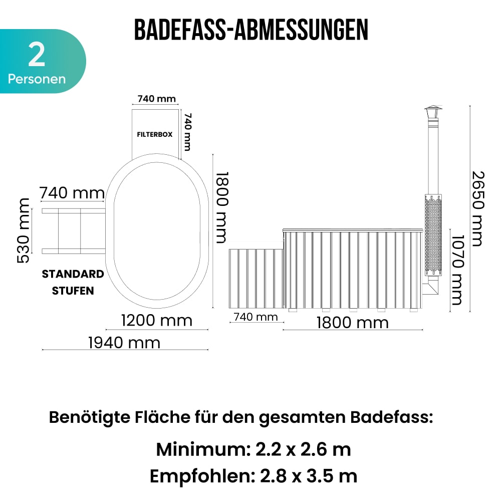 - 2 Personen Hot Tub Badefass Einsatz aus Fiberglas (1670 €)