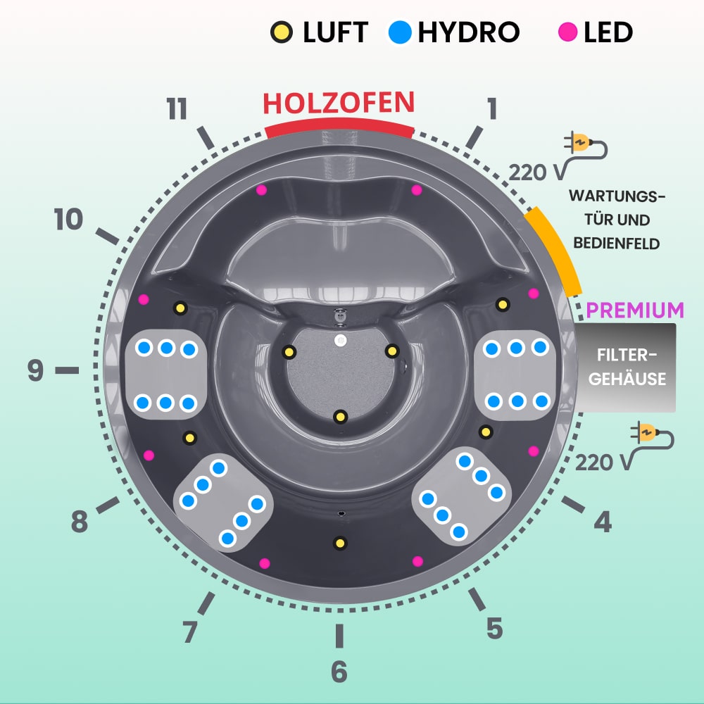 Premium Filteranlage Hot Tub mit integriertem Holzofen | 24 Hydrodüsen | Für 4–6 Personen | AISI 316