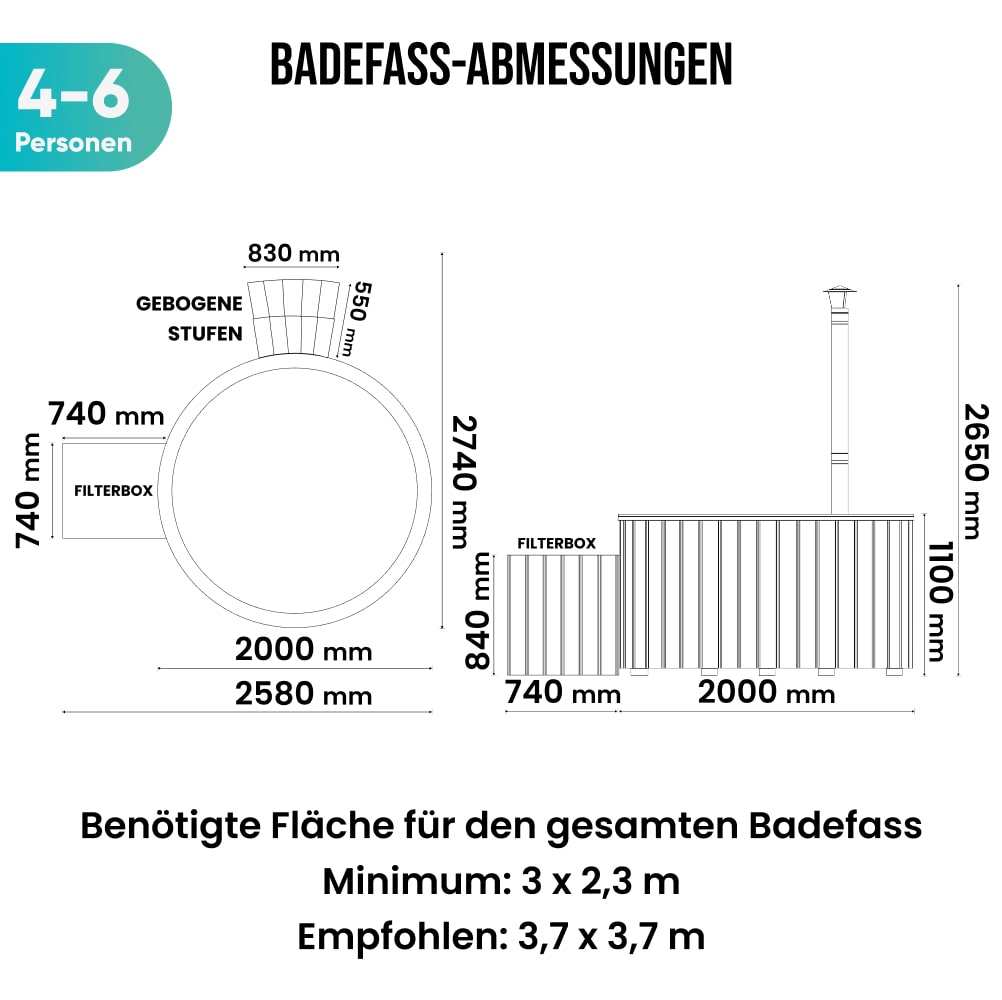 Hot Tub mit Verta™ Holzofen | Filteranlage mit Sandfilter & UV-C Lampe | 16 Hydrodüsen | Für 4–6 Personen