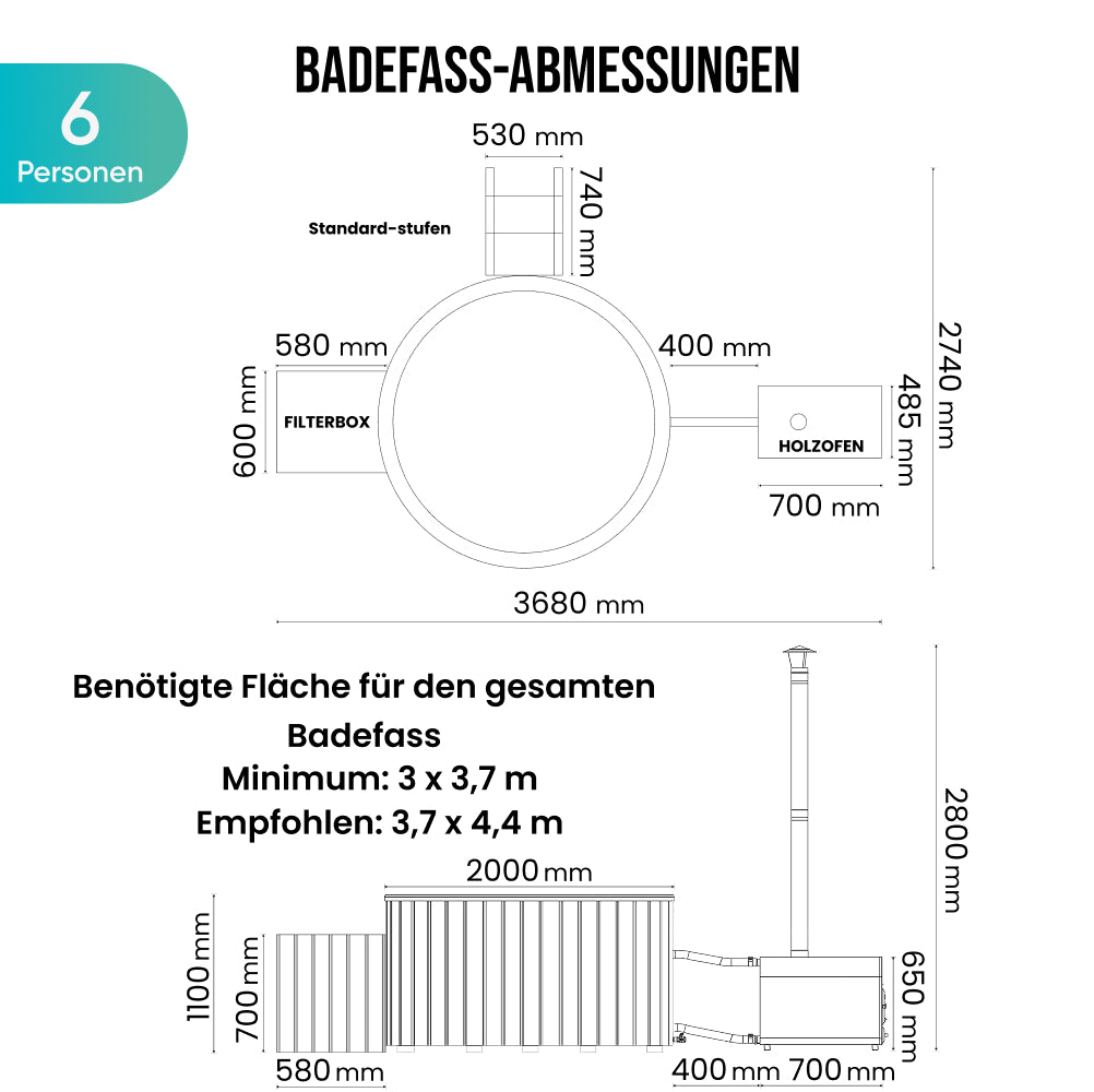 • 4-6 Personen Hot Tub Badefass Einsatz aus Acryl (2370€)