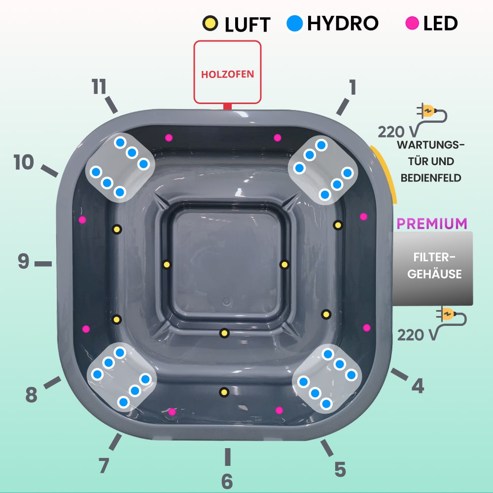 Hot Tub mit Horizon™ Holzofen | Filteranlage mit Sandfilter & UV-C Lampe | 16 Hydrodüsen | Für 4–8 Personen