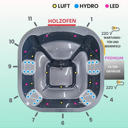 Premium Filteranlage Whirlpool mit integriertem Holzofen | 24 Hydrodüsen | Für 4–6 Personen | AISI 316
