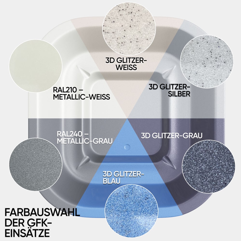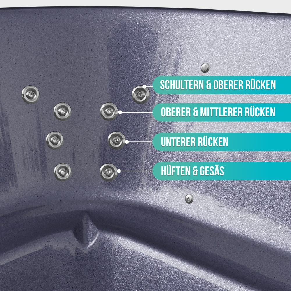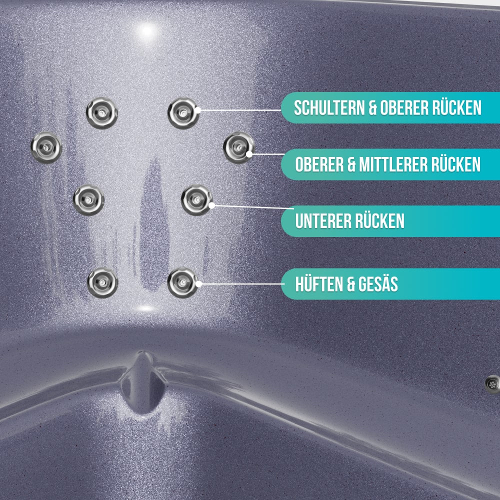- Luftdüsen-Massagesystem, 8 Düsen, 0,7 kW (330€)