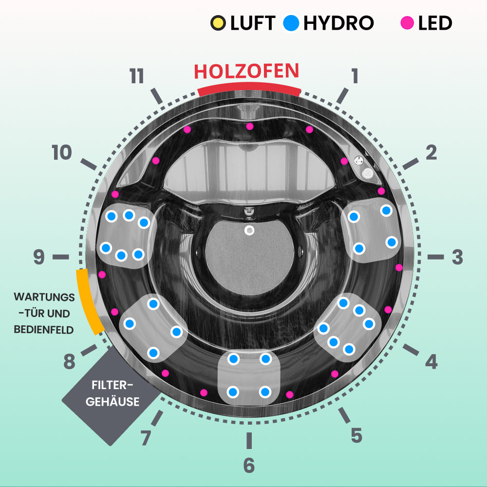 Die beste Konfiguration XL Hot Tube Whirlpool mit Ofen 6-8 | Filteranlage mit Sandfilter, UV-C, 3kW